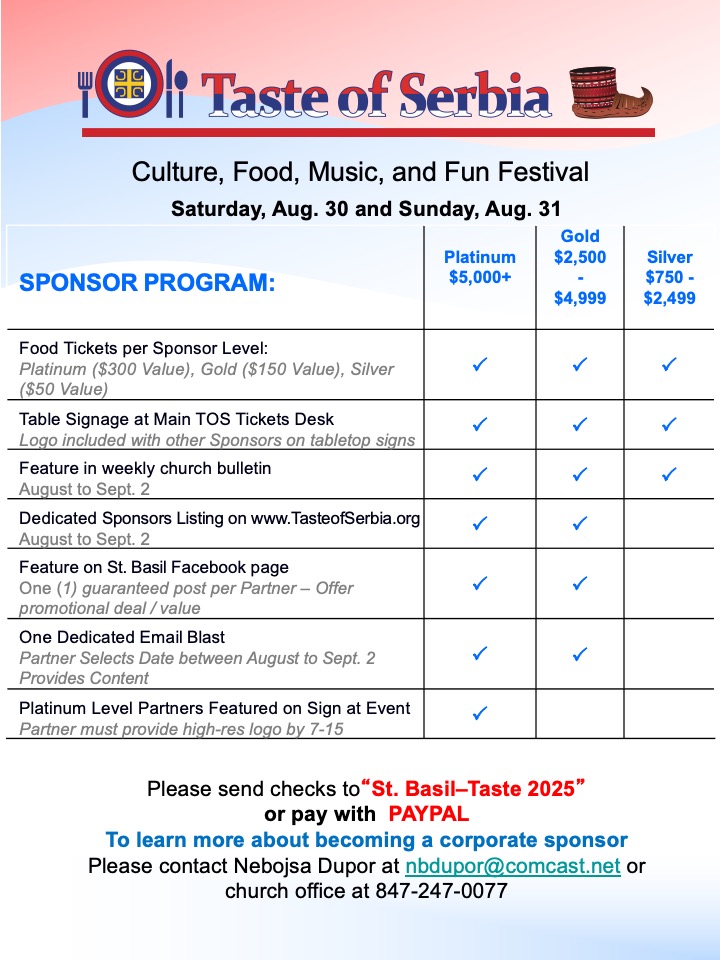 2025 Sponsors Sponsor Program Sponsor Taste Of Serbia Sponsor After you click on the button, you will be redirectedto the secure PayPal.com website to make a donation.